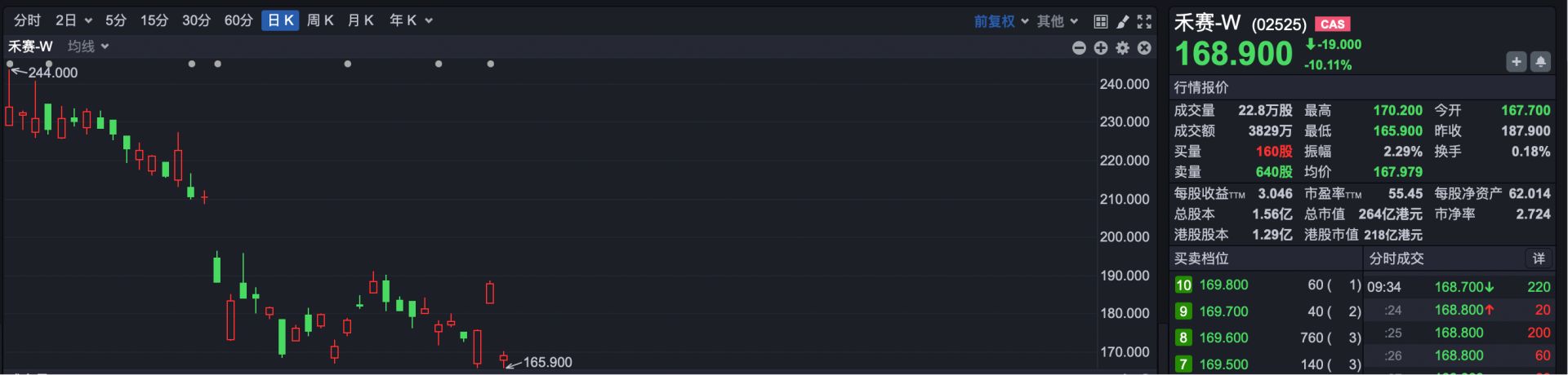其中,禾赛-W(HK02525)公告,第三季度取得净收入人民币7.95亿元,同比增加47.5%;净利润2.56亿元,同比扭亏为盈。全年净利润指引上调到3.5亿元至4.5亿元,预计第四季度的净收入将介于10~12亿元之间,同比增长约39%至67%。
