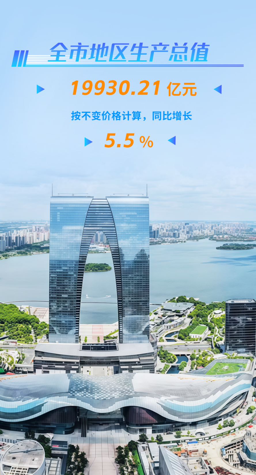 根据全省地区生产总值统一核算结果,前三季度全市实现地区生产总值19930.21亿元,按不变价格计算,同比增长5.5%。分产业看,第一产业增加值117.18亿元,增长4.6%;第二产业增加值8879.44亿元,增长6.0%;第三产业增加值10933.59亿元,增长5.0%。