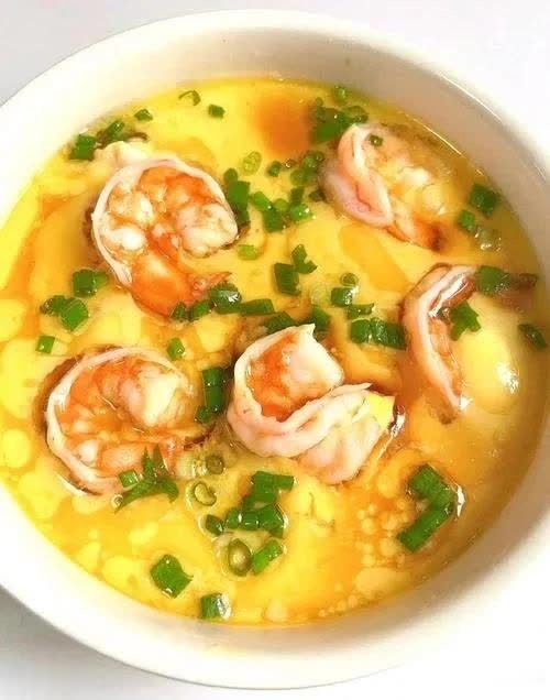 6. 加入虾仁:将炒好的虾仁均匀放在半熟的蛋液上。然后轻轻搅拌,确保虾仁均匀分布在蛋液中。