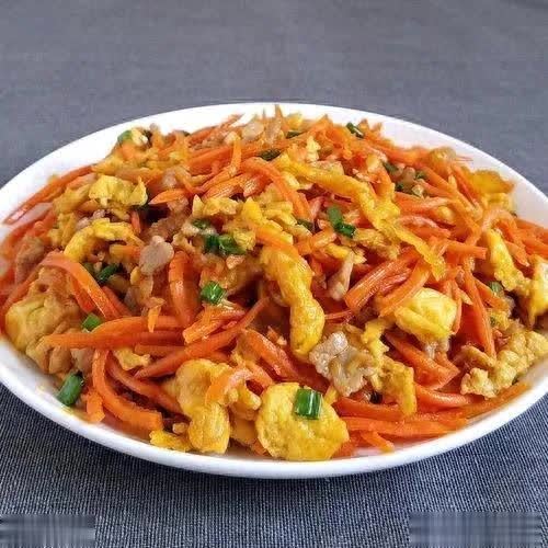 6. 合并胡萝卜和鸡蛋:将炒好的胡萝卜丝加入炒好的鸡蛋中,快速翻炒均匀,使鸡蛋和胡萝卜充分混合在一起。