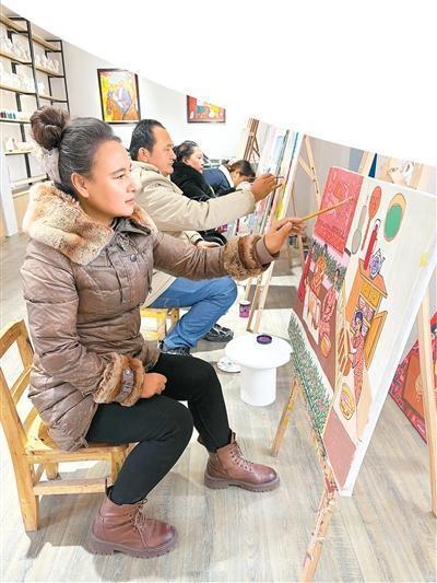 r冬日午后,新疆维吾尔自治区阿克苏地区阿瓦提县刀郎文化(农民画)非遗传承中心里,斜阳透过画室的窗户铺洒进来。28岁的乃比江·阿布都热合曼手握画笔,笔尖蘸上一抹颜料,在画板上轻轻勾勒、涂抹,一幅刀郎生活场景图,很快就有了鲜活的轮廓。