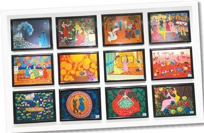 在阿瓦提县刀郎文化(农民画)非遗传承中心展出的刀郎农民画作品。 本版图片除标注外,均为本报记者 孙 懿摄